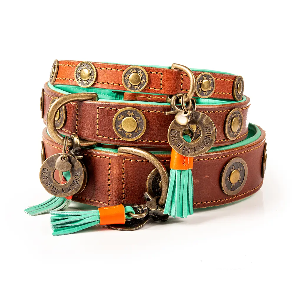 ❤︎ Original Dog with a Mission® Design: collier Urban fait main en cuir de haute qualité, conçu pour ceux qui préfèrent un style robuste et simple.