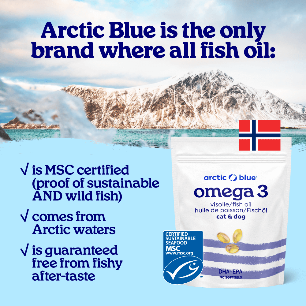 L’huile de poisson Pure Arctic MSC est un complément alimentaire oméga-3 très efficace pour les chiens, les chats et les chevaux.