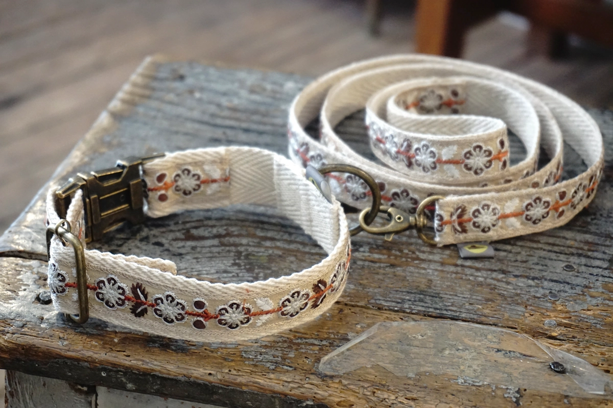 Cet ensemble collier et laisse assortis est spécialement conçu pour les petits et moyens chiens, ainsi que pour les compagnons à la peau sensible. Réalisé sur une base de ruban 100 % coton, il offre un toucher exceptionnellement doux et naturel, sans additifs ni matières industrielles irritantes. L’ensemble est pensé pour procurer un confort optimal, aussi bien pour le chien que pour son propriétaire.